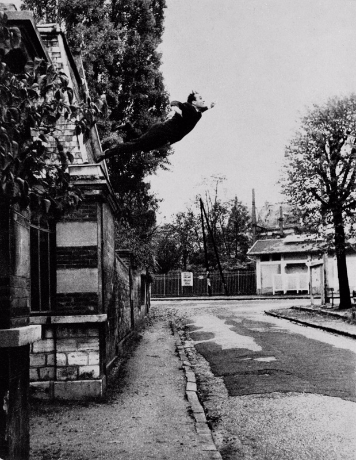 Первая фотография прыжка появилась в газете под заголовком «Человек в космосе! Художник космоса бросает себя в пустоту» ( на самом же деле художник никуда не прыгал