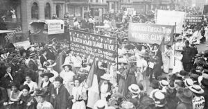 енщин вышли на протест для борьбы за женские права, в том числе: 10 часовой рабочий день, улучшение условий труда, увеличение платы труда и, конечно же, право голосовать.
